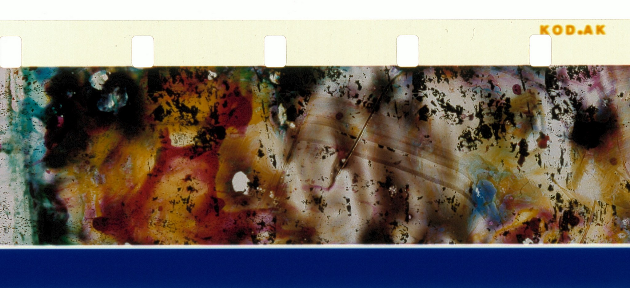 #13 is a series of extremely dark images, mostly in purples, greens and fiery red-orange-yellows, shifting one to another in displays greens and fiery red-orange-yellows, shifting one to another in displays of textured shapes which suggest a thick tangle weave of threads. #14 is composed of muted color-shapes shifting variably in juxtaposition and with high-contrast black & white abstract patterns. #15 is a rapid shift of patterns black & white playing off against muted coils of color. #16 is an even MORE exaggerated contrast of color and black-&-white patterning. #17 is a series of quite distinct globules of paint brilliantly colored and shifting as if vertically in the plane (as different from the more horizontally oriented previous parts. #18 is almost calligraphic in its overlays of dark (occasionally colored) glyphs backed by brilliant color motifs.